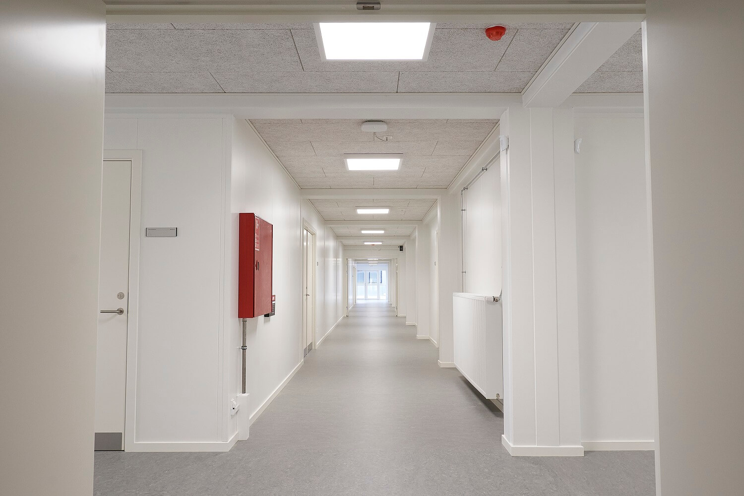 Bygningerne er opført med solide og velisolerede konstruktioner og har et moderne udtryk med grå facadeplader. Indvendigt er der lyse overflader samt en loftshøjde på 2,5 meter, der skaber behagelige rum at opholde sig i. Derudover er der installeret fjernvarme, som sikrer en stabil og energieffektiv opvarmning, og alle rum er udstyret med komfortventilation, der bidrager til et sundt indeklima. Således er bygningerne med til at skabe funktionelle rammer, som understøtter både de studerendes og undervisernes daglige arbejde.