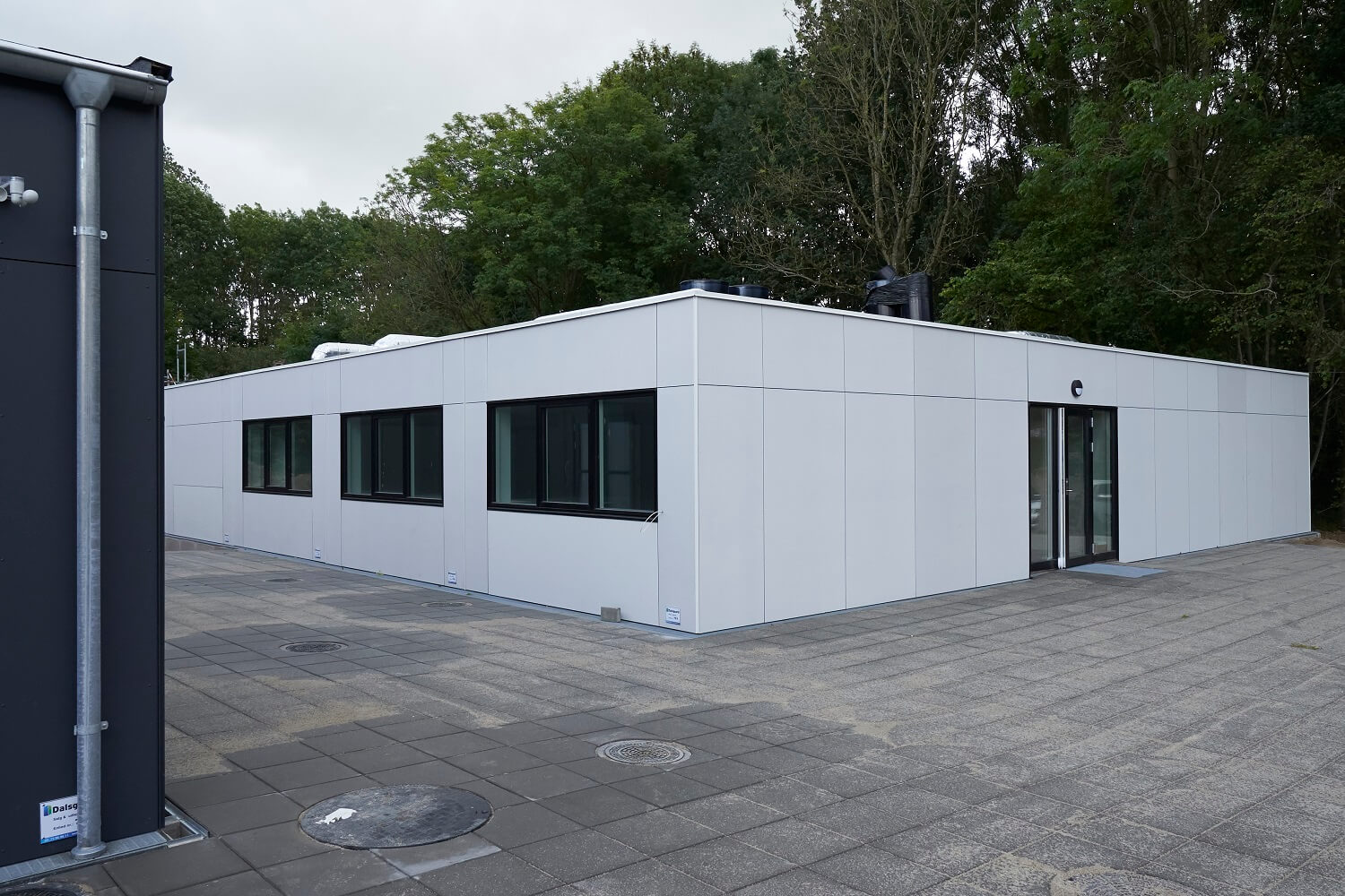 I 2020 blev der opført tre bygninger ved Syddansk Universitets campus i Odense, da universitetet stod med akut behov for kontor-, laboratorie- og projektarbejdspladser. De tre bygninger er opstillet i et plan og udgør tilsammen 2.421 kvadratmeter.